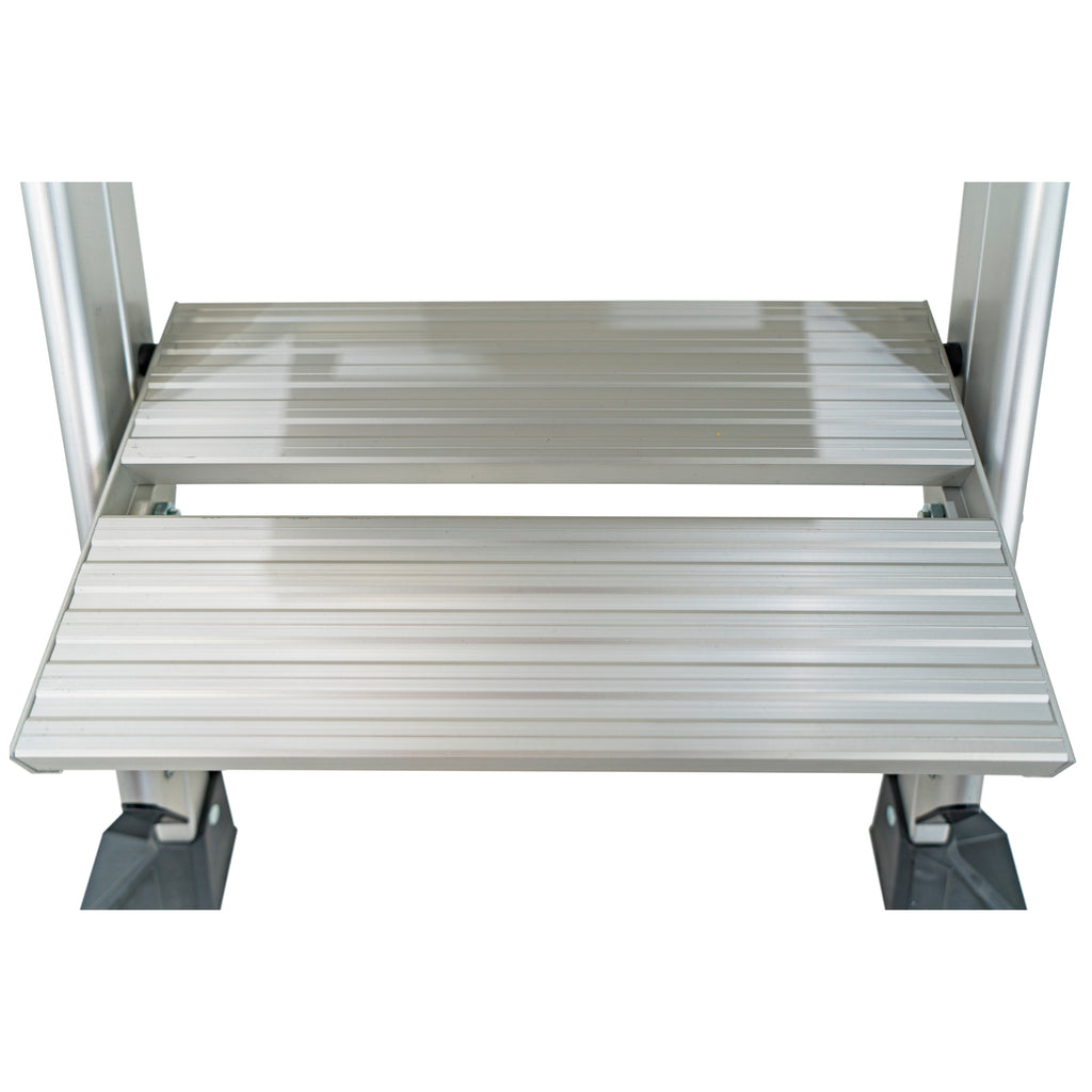 С ултрашироките стъпала на Jumbo Step се усеща като качване по стълбище, а не по стълба. Изработена е от лек алуминий от авиационен клас и стъпалата и имат безопасна, неплъзгаща се повърхност.