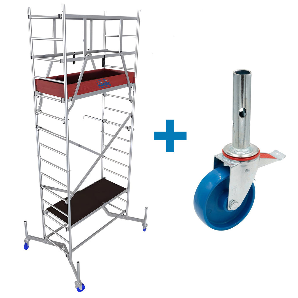 Уважаеми клиенти, моля да имате предвид, че колелата за този модел скеле не са включени в комплекта от производителя и се закупуват отделно.