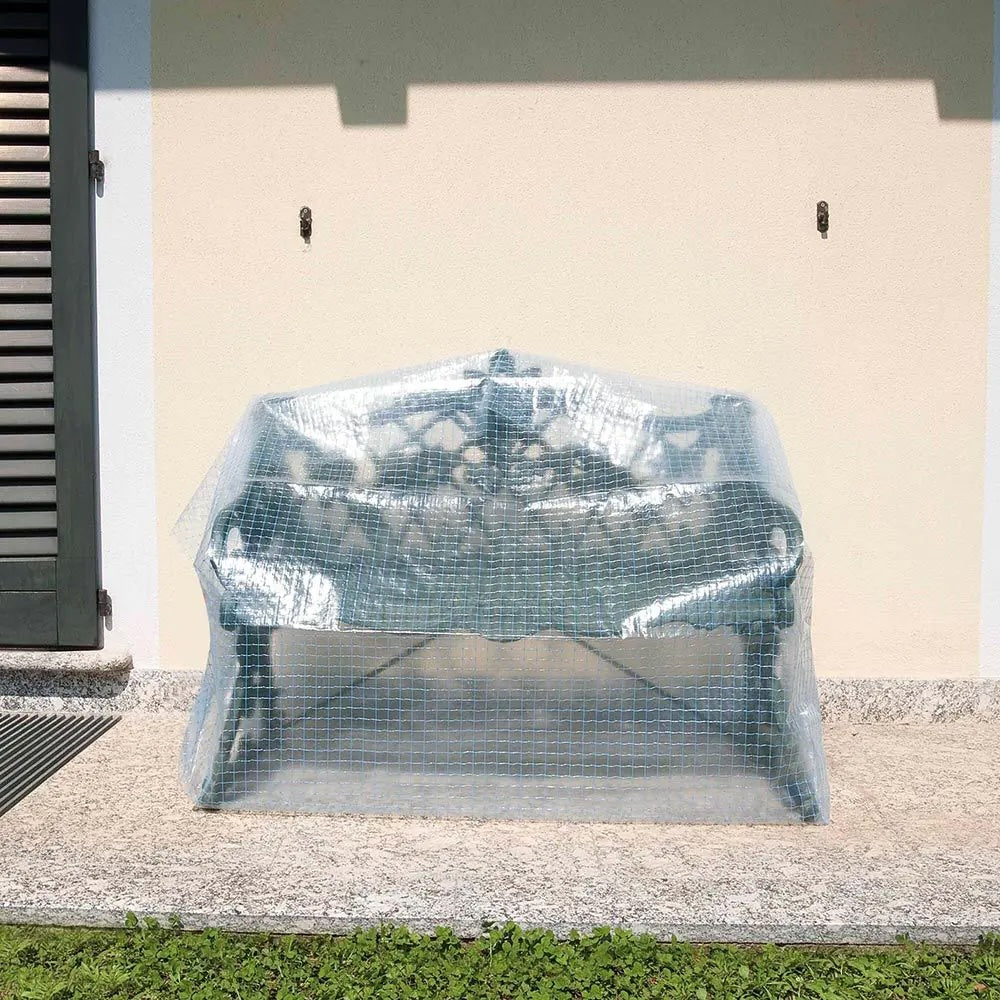 Материалът е с дебелина 90 микрона, устойчив е на UV лъчи, непропусклив, не гние, лесен за почистване и е подходящ за многократна употреба. Леката и прозрачна структура пропуска светлина и осигурява видимост, като същевременно действа като надеждна бариера срещу външни влияния.