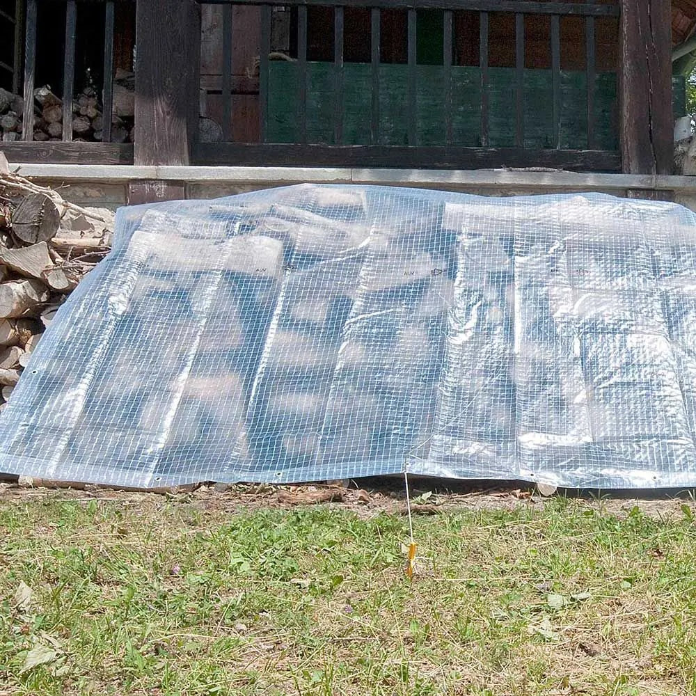 Прозрачно защитно покривало от двуслоен полиетилен (PE), подсилено с вътрешна полипропиленова мрежа (PP) с растер 18 × 18 мм за повишена устойчивост на разкъсване