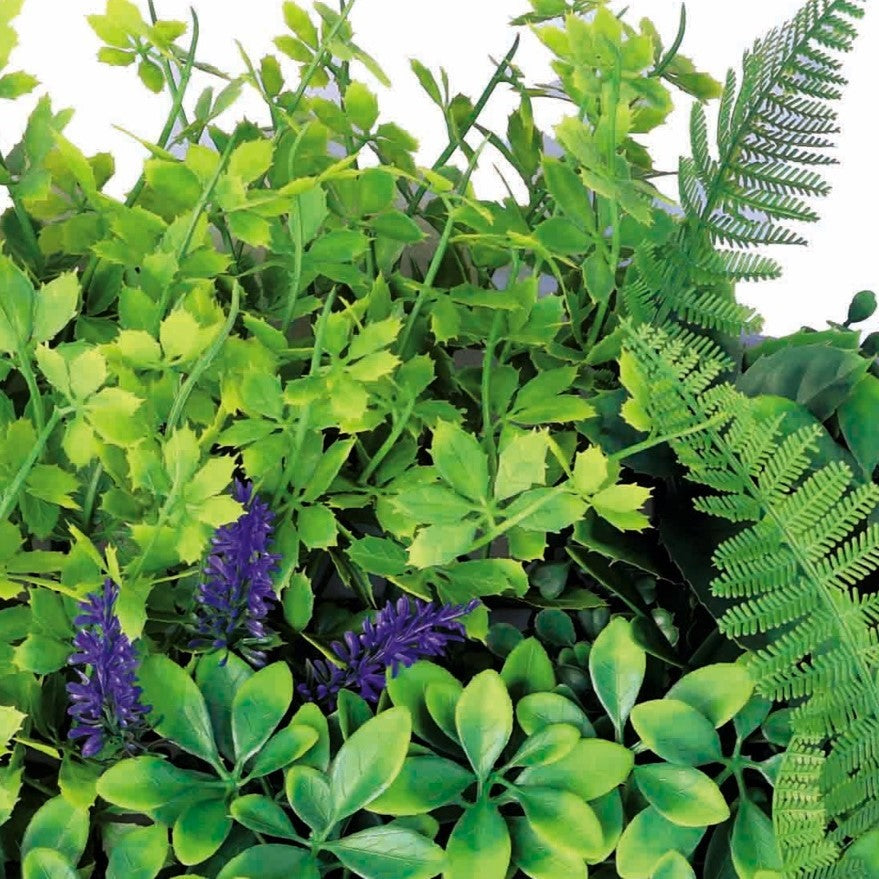 • Декоративна плочка от папрат, мъх и тропически растения с лилави и бели акценти