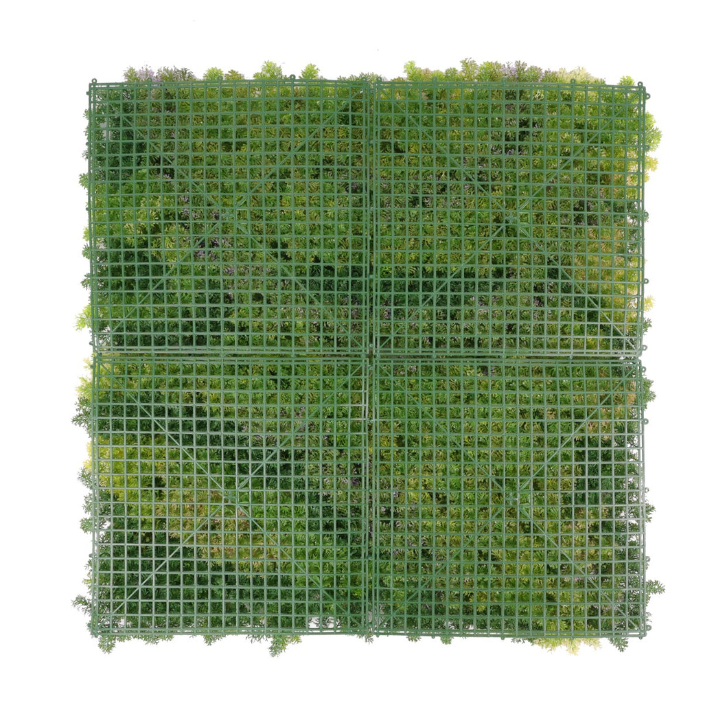 Изкуствената зеленина преобразява вертикалните повърхности и вдъхва живот на места, където иначе не би имало такава. Устойчивостта на полиетилена към UV лъчи е вложена в листата, а не е просто напръскана върху продукта след това. Декоративната плочка е идеалният избор за тези, които искат да преобразят скучните стени и да придадат блясък на пространството си. Може да се използва самостоятелно като акцент или да се поставя до други плочки за създаването на цяла вертикална градина. Подходяща както за вътрешни, така и за външни приложения. Не отделя неприятна миризма и спомага за намаляване на ехото в големи помещения.