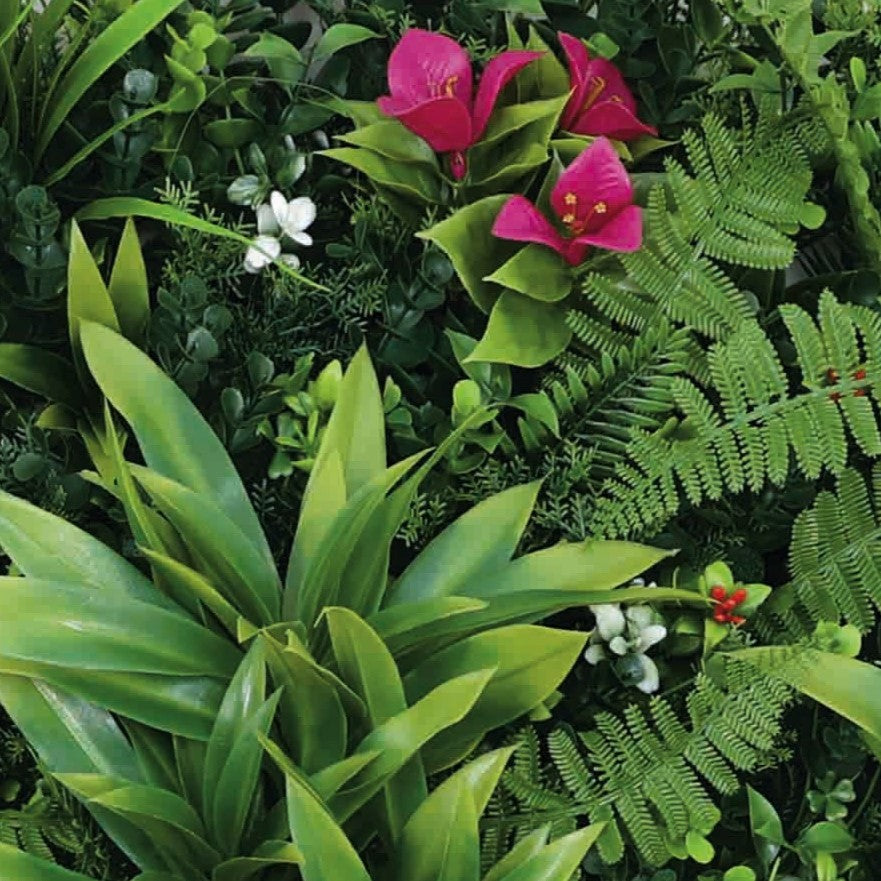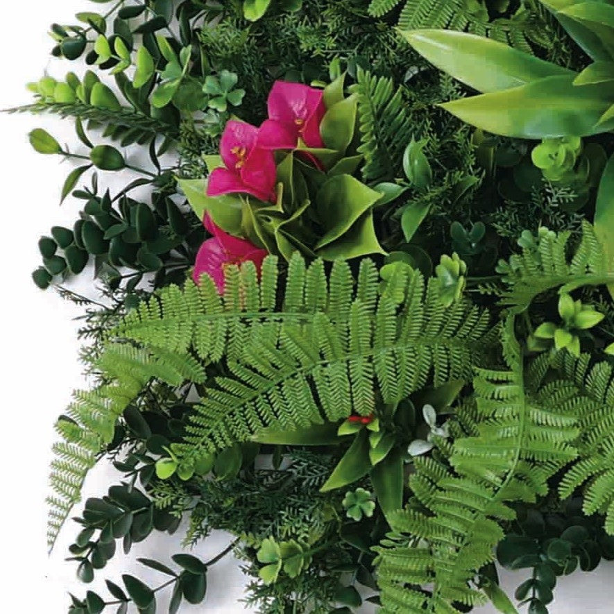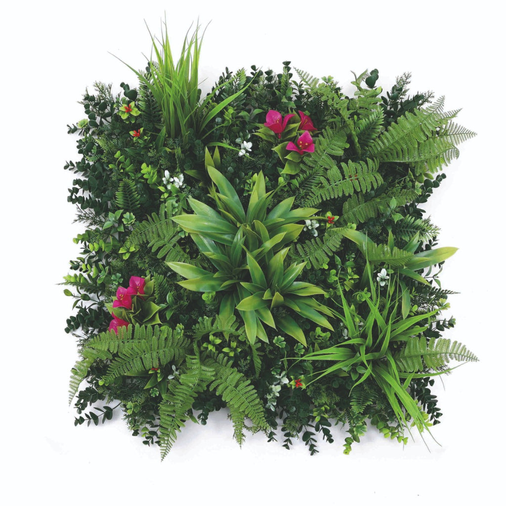 Декоративната плочка от тропически растения и розова бугенвилея е произведена от висококачествен полиетилен с UV защита. Може лесно да изрязвате декоративните плочки с ножица, да ги оформяте спрямо нуждите си и дори да ги увивате около различни предмети. Закрепват се за огради и парапети с помощта на кабелни връзки или тънка тел за привързване, като придават свеж изглед на околното пространство. Използвайте декоративните плочки и като акцент в интериора.