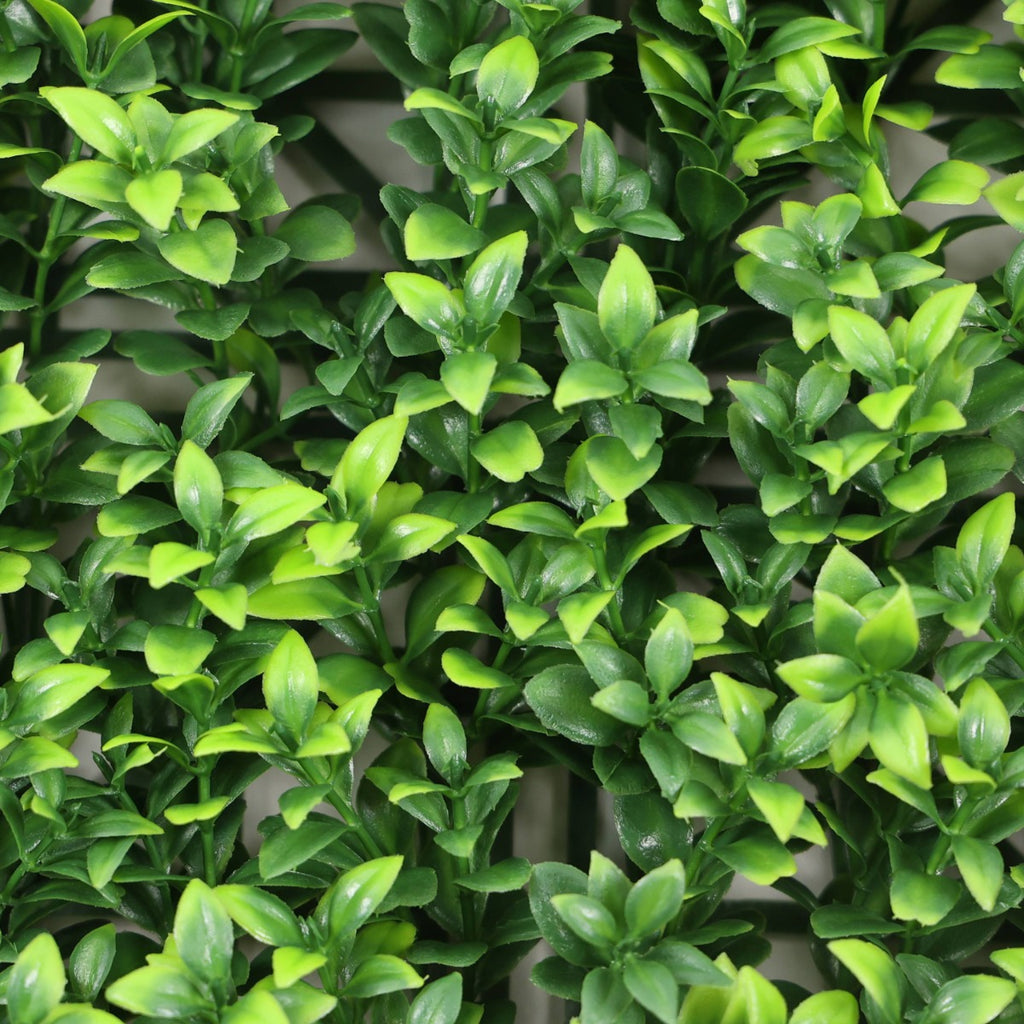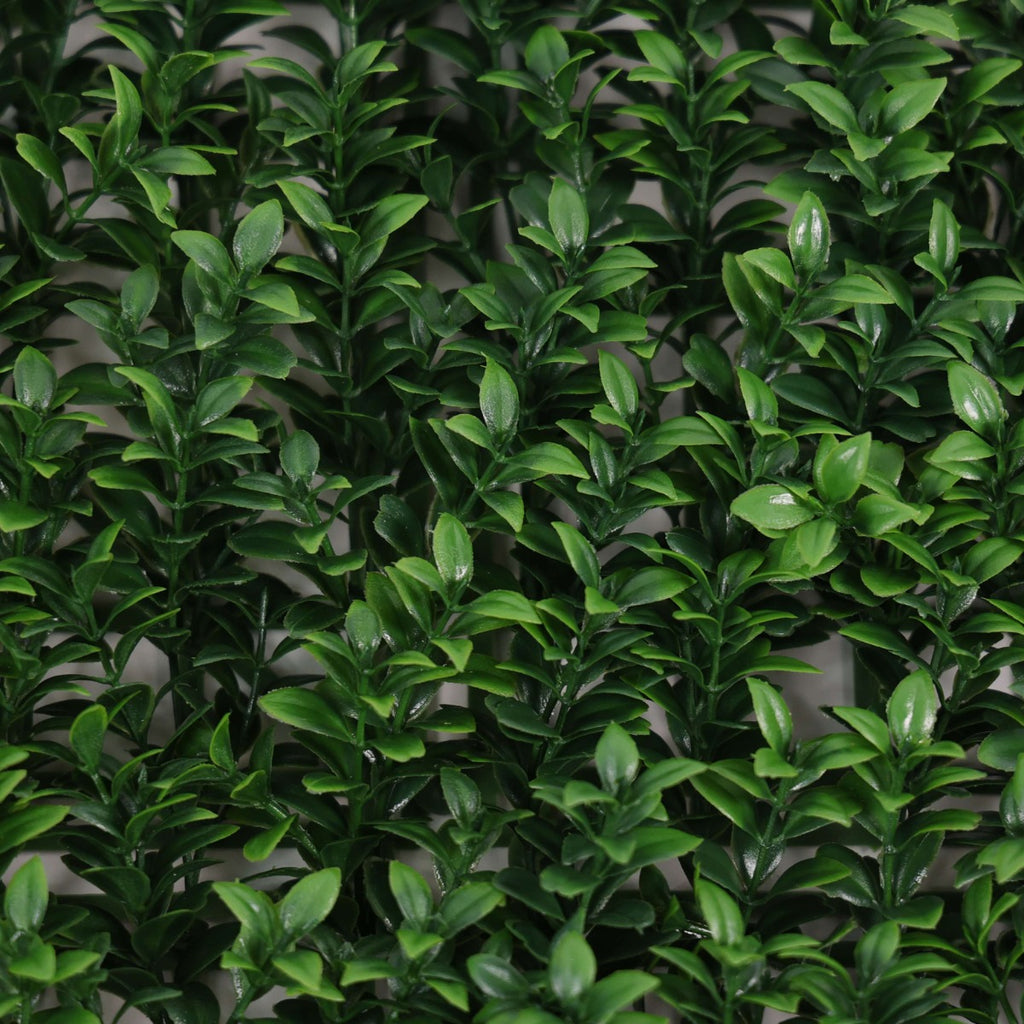 Листата на плета се отличават с красива смесица от зелени нюанси, вариращи от наситено зелено до по-светли, свежи тонове, което му придава реалистичен вид. Декоративната плочка се използва за създаване на зелени стени, вертикални градини, уплътняване на огради или добавяне на зеленина към парапети на балкони и тераси. Тя предлага алтернатива на живите растения, която не изисква поддръжка.