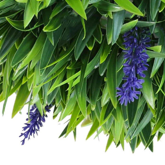 Тя е изработена от висококачествен полиетилен и има диаметър 33 см. Плътната структура от зелени листа и елегантните лилави акценти създават ефект на естествено растение. Подходяща е за интериор и за употреба на открито – за дома, офиса, градината, терасата или празнична украса.