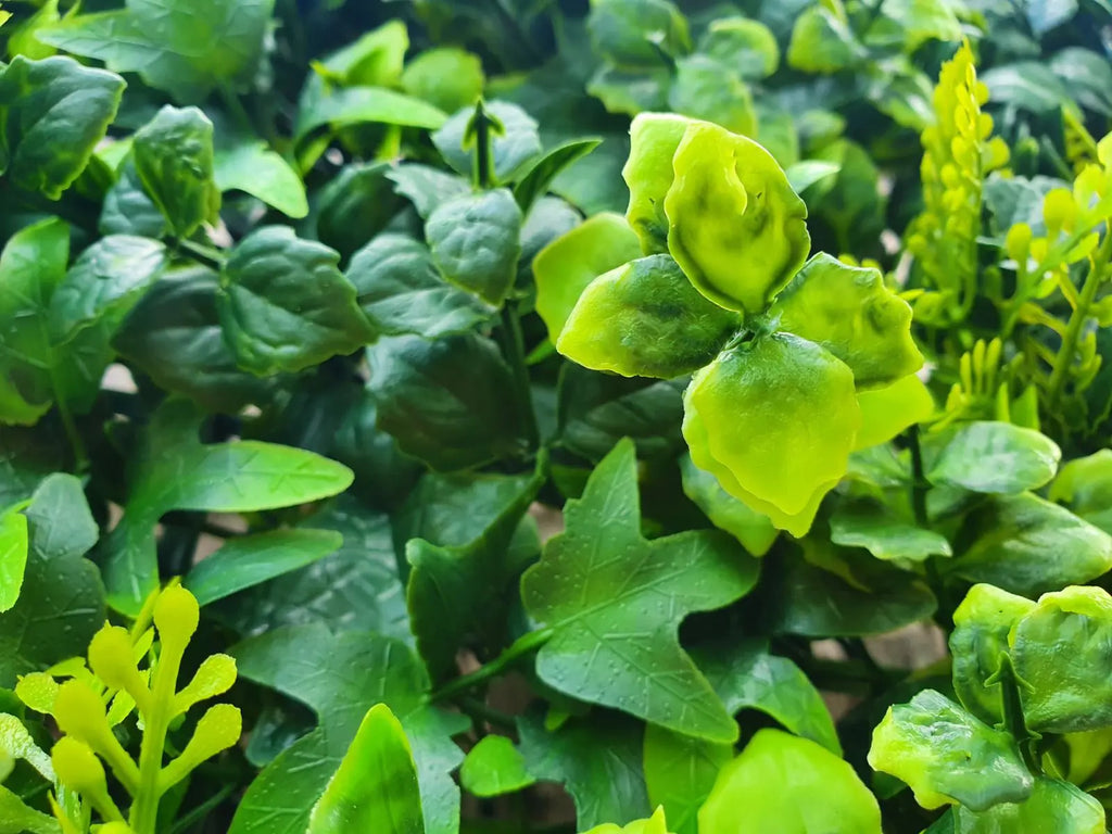 Декоративните плочки Бръшлян и Чемшир са произведени от полипропилен и не изискват поддръжка. Листата на бръшляна и другите растения имат красива, реалистична и хармонична визия. Зелени са на цвят, като на някои места плавно преливат в светлозелено. Имат чиста линия и UV защита, не избледняват на открито и запазват ярките си цветове дълго време. Може лесно да изрязвате декоративните плочки с ножица и да ги оформяте спрямо нуждите си. Закрепват се за огради и парапети с помощта на кабелни връзки или тел за привързване, като придават свеж изглед на околното пространство. Използвайте декоративните плочки и като акцент в интериора.