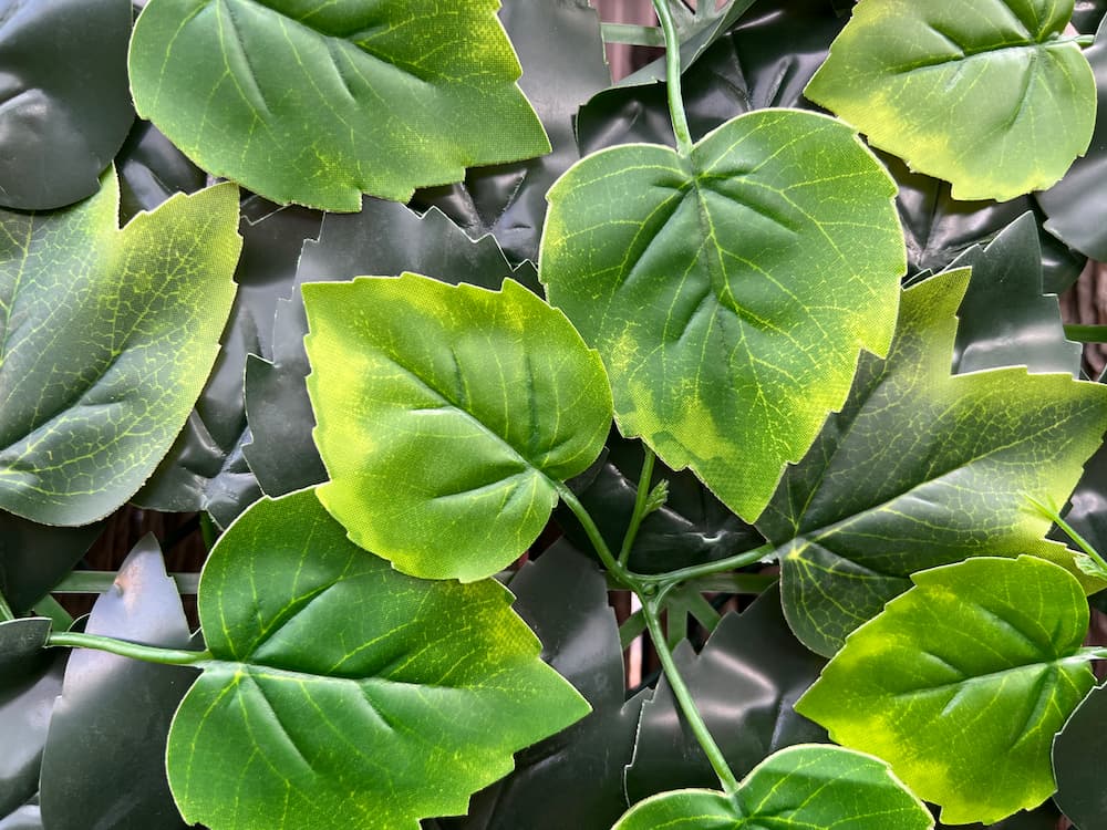 Декоративните плочки Бръшлян са произведени от полипропилен с ниска плътност. Те са изключително гъвкави. Нежните листа имат 3 дяла и са плътно разположени върху плочката. Дизайнът представлява свежа комбинация от тъмнозелени и светлозелени листенца с различна големина. Може лесно да изрязвате декоративните плочки с ножица, да ги оформяте спрямо нуждите си и дори да ги увивате около различни предмети. Закрепват се за огради и парапети с помощта на кабелни връзки или тънка тел за привързване, като придават свеж изглед на околното пространство. Използвайте декоративните плочки и като акцент в интериора.