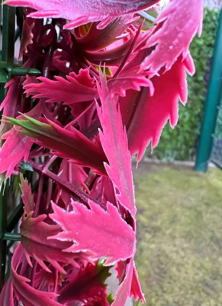 Декоративните плочки са произведени от полипропилен, имат красива, реалистична визия на червен японски клен и не изискват поддръжка. Листата са 7-делни, дълги и плътно разположени. Дизайнът представлява свежа комбинация от червени листенца със светлозелени връхчета. Може лесно да изрязвате декоративните плочки с ножица и да ги оформяте спрямо нуждите си. Закрепват се за огради и парапети с помощта на кабелни връзки или тел за привързване, като придават свеж изглед на околното пространство. Използвайте декоративните плочки и като акцент в интериора.