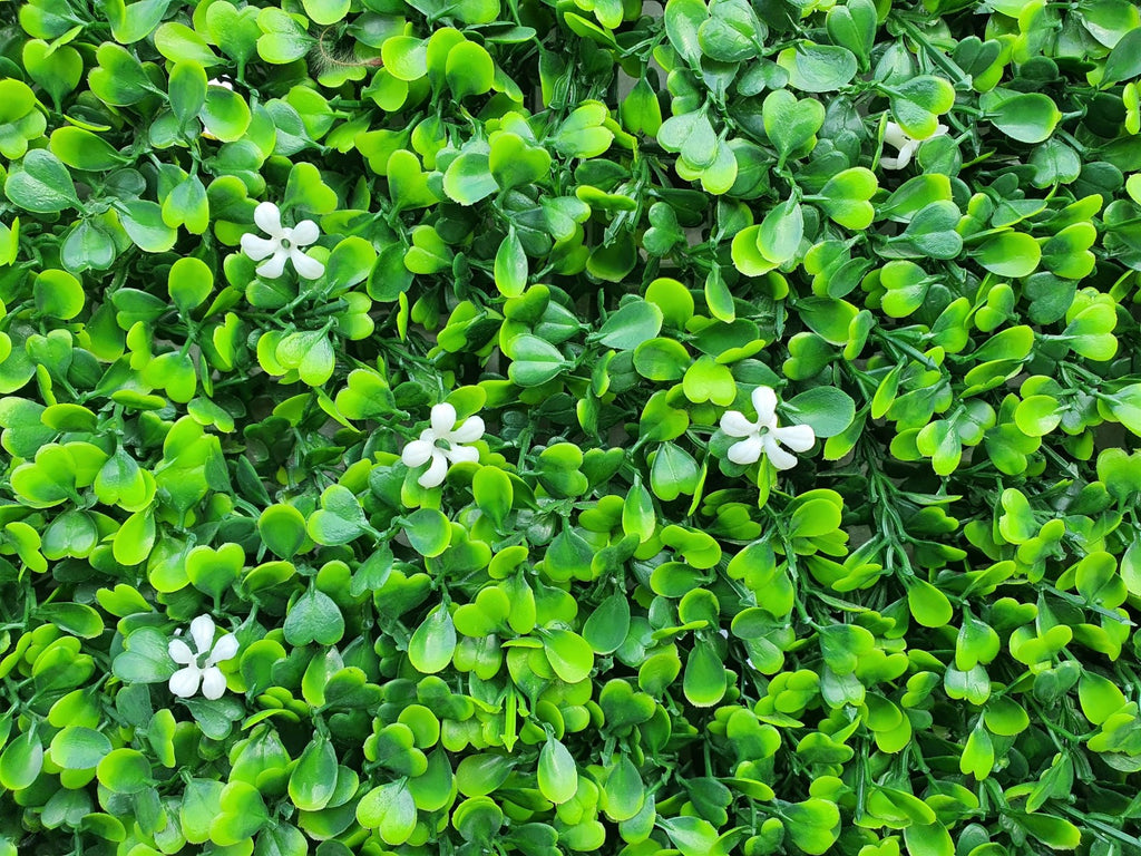 • Реалистична визия на зелени листа и бели цветчета - стоят добре до жива растителност