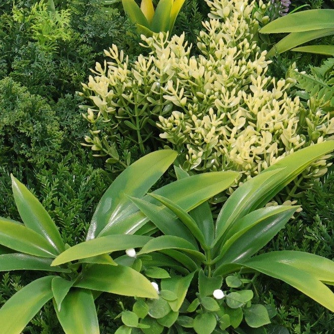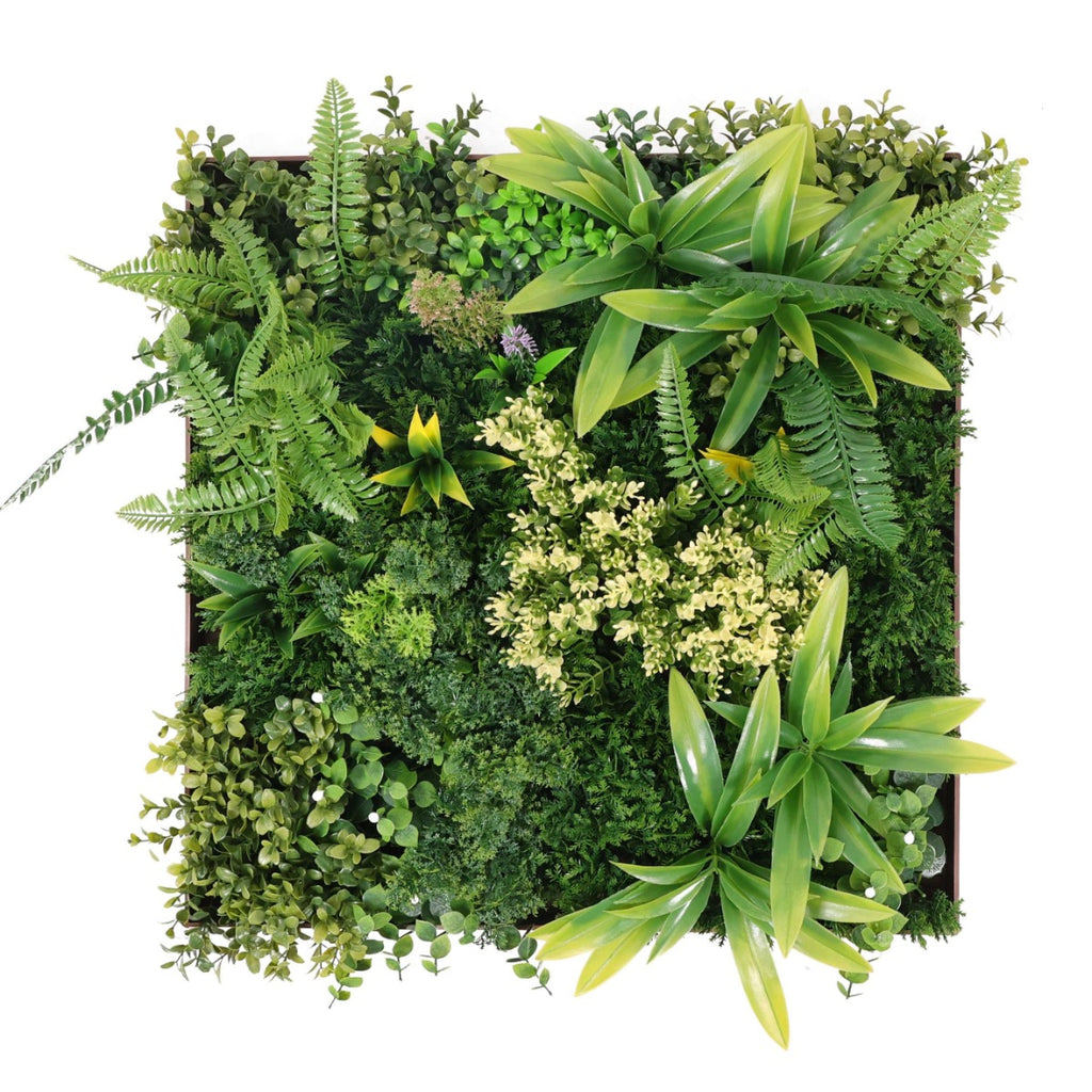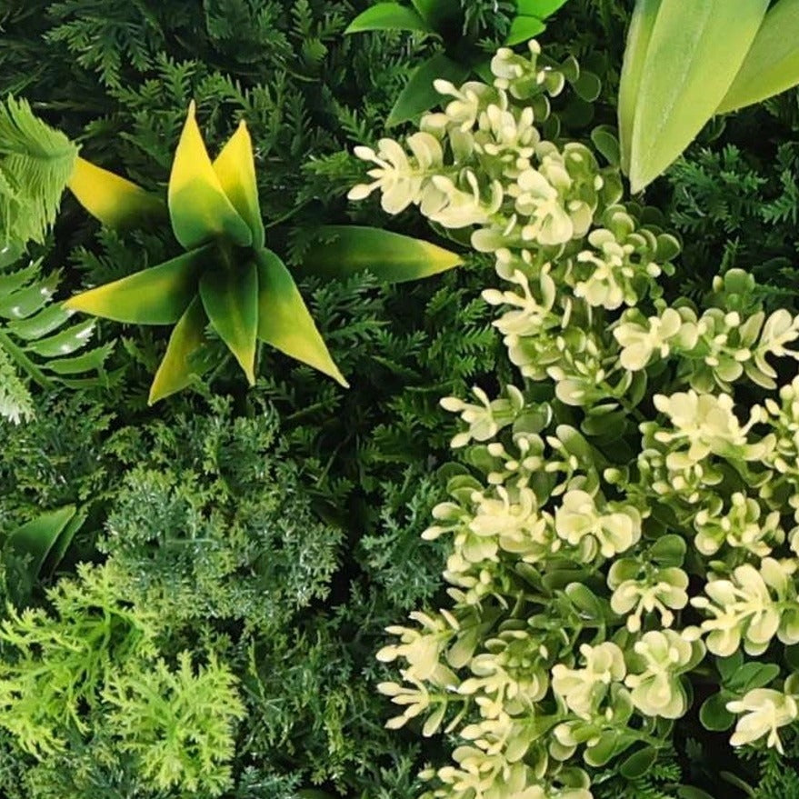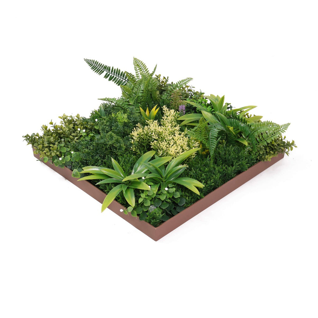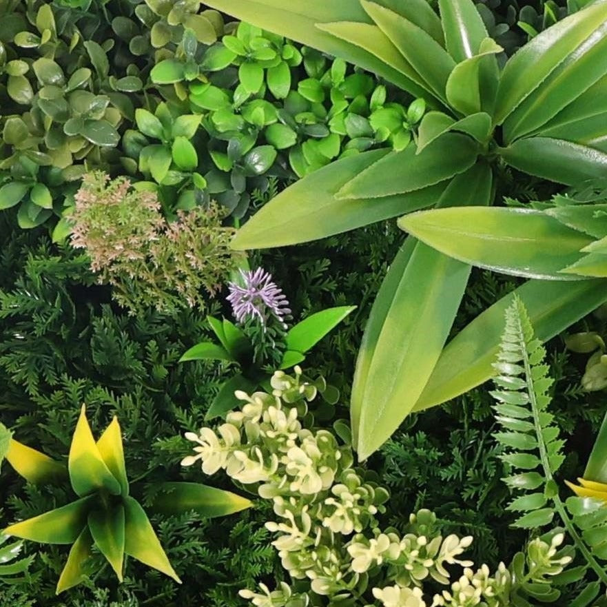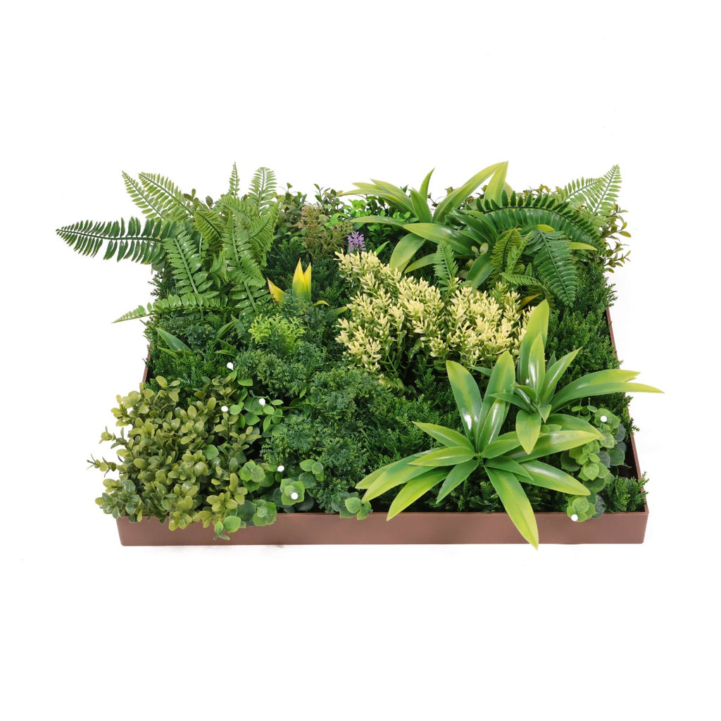 Паното има здрава рамка, в която са аранжирани гъсто разположени изкуствени листа и цветчета от папрат, фаларис, кливия и други растения. Бързо и лесно се монтира върху почти всяка вертикална повърхност, точно както се окачва картина. Декоративното пано е изработено от първокласен материал с UV инхибитори с противоизбледняващи и слънцеустойчиви свойства и може да се използва както на закрито, така и на открито.