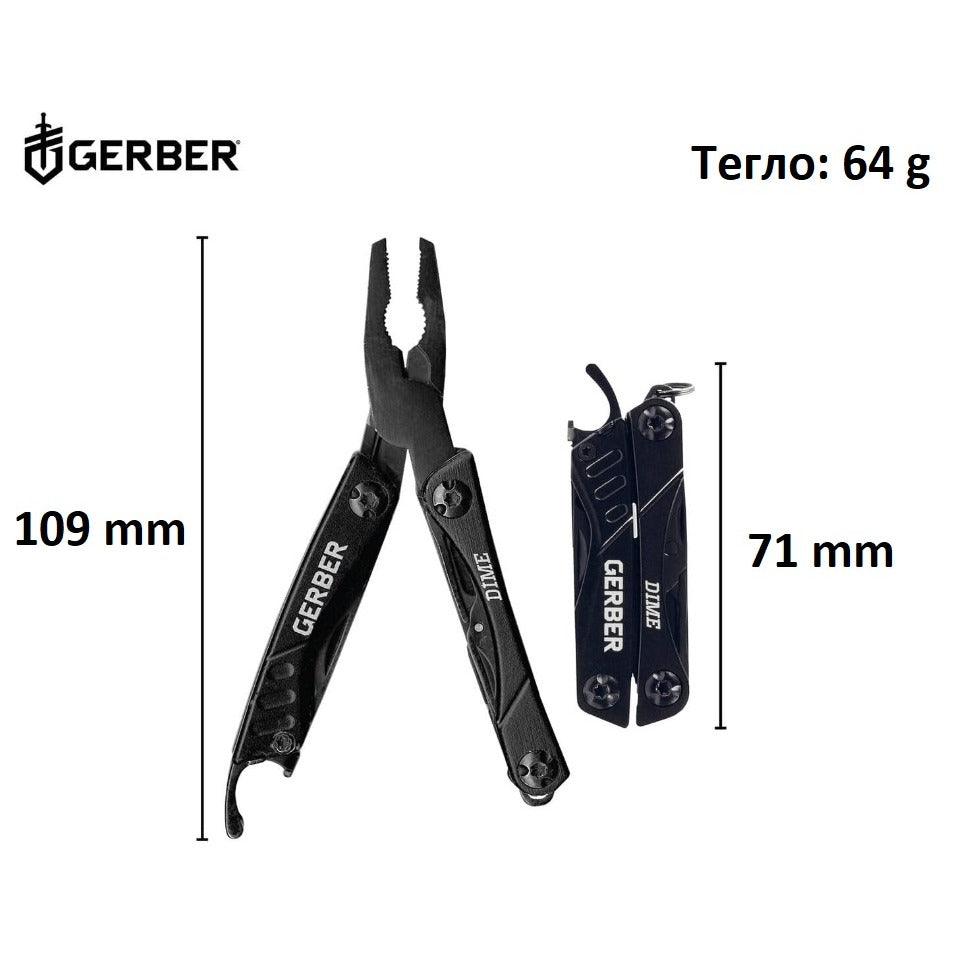 Джобен мултитул GERBER Dime, цвят черен