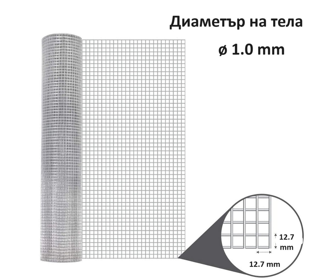 Произведена е от електрозаварени стоманени телове с диаметър ø 1.0 мм и размер на прозореца 12.7 x 12.7 мм. Мрежата е здрава и има висока устойчивост на корозия - поцинкована е след заваряването на теловете, за да се гарантира дълга употреба. Подходяща е за изработването на разнообразни занаятчийски проекти, изграждане на клетки за пилета и зайци, контрол на животни, ограждане на лехи и стволове на дървета, предпазване на улуци или подпиране на увивни растения. Може да се монтира в долната част на периферни огради или прозорци на мазета за защита от змии, мишки и други дребни гризачи.
