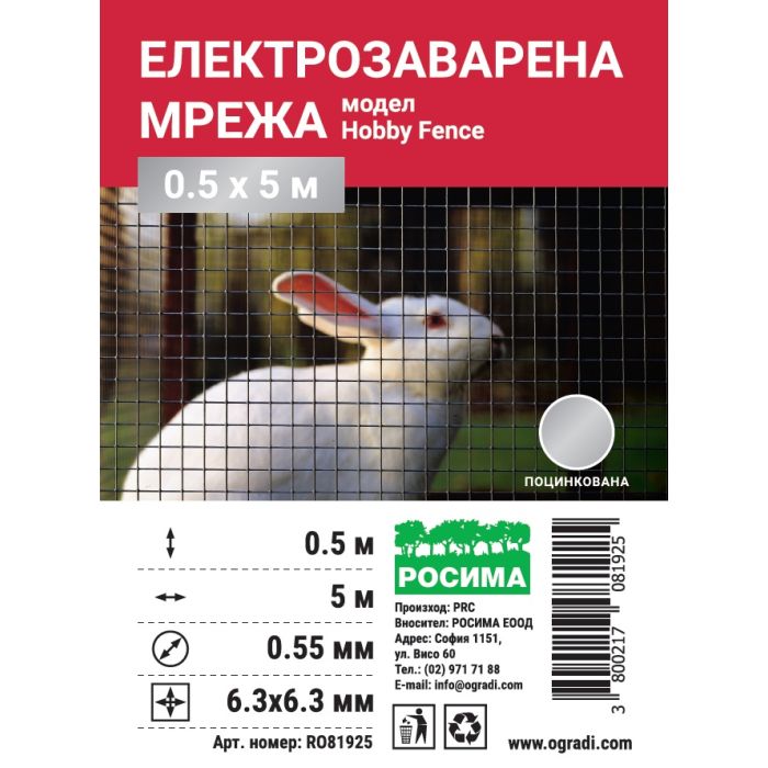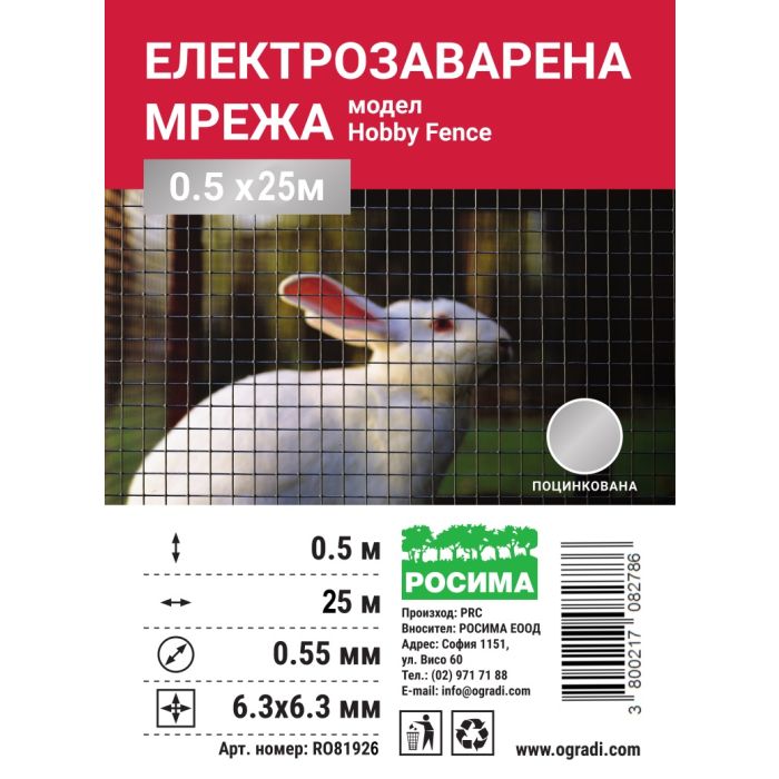 Електрозаварена мрежа HOBBY FENCE, RO 81925, RO 81926, RO 81932, 6.3 x 6.3 mm, ø 0.55 mm, поцинкована