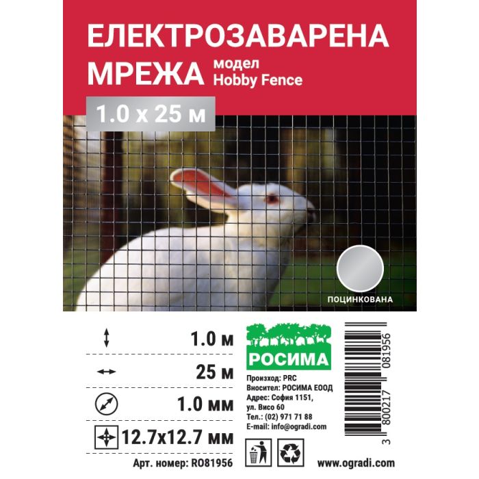 Електрозаварена мрежа HOBBY FENCE, RO 81949, RO 81956, 12.7 x 12.7 mm, ø 1.0 mm, поцинкована
