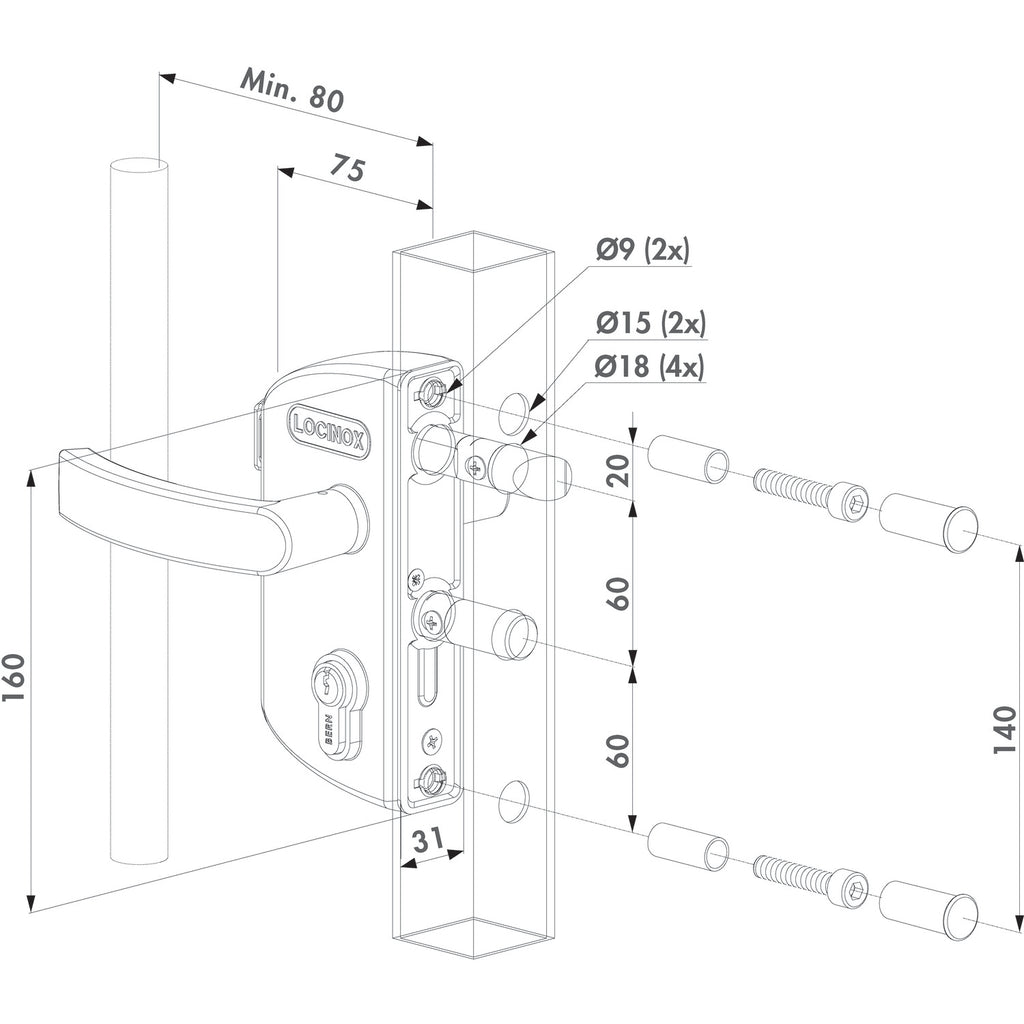 • Съвместимост с други брави Locinox – отворите за монтаж са съобразени с възможност за замяна без допълнителни корекции