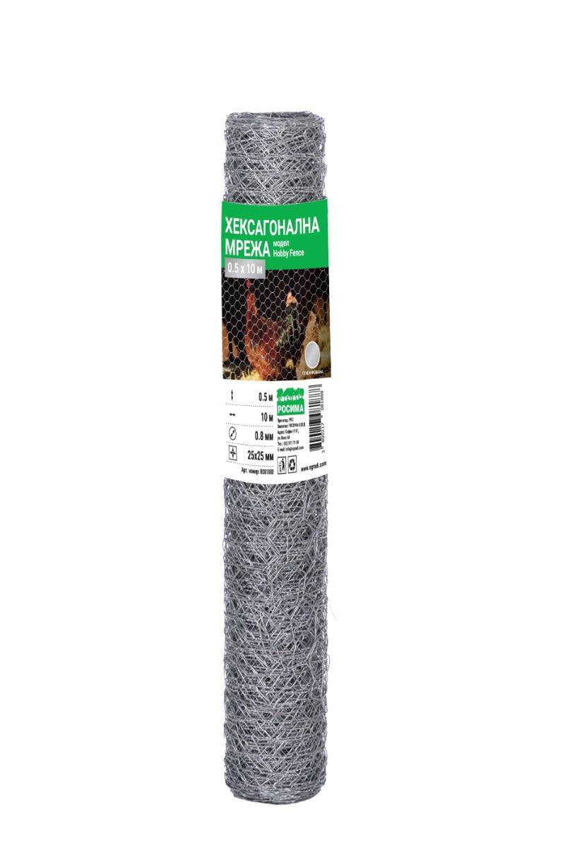 Хексагоналната плетена мрежа на ролка HOBBY FENCE се предлага на височина 0.5 м (RO 81888) и 1.0 м (RO 81895) и дължина 10 м.