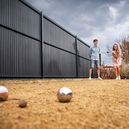 Комплектът е предназначен за 3D оградни панели с дължина L=2.50 м, височина H=1.53 м и растер 50 мм и осигурява 95% плътност, естетичен завършек и уединение. Ламелите са изработени от WPC (wood plastic composite) – здрав композитен материал, който съчетава визията на дърво с дълготрайността и здравината на полимерите. WPC ламелите са устойчиви на влага, UV лъчи и температурни промени, не гният, не се напукват и не изискват поддръжка като боядисване или лакиране. Цветът антрацит придава модерен и елегантен вид, подходящ както за частни дворове, така и за бизнес или обществени пространства.