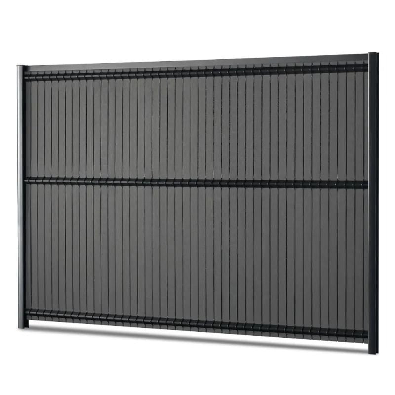 Комплектът е предназначен за 3D оградни панели с дължина L=2.50 м, височина H=1.73 м и растер 50 мм и осигурява 95% плътност, естетичен завършек и уединение. Ламелите са изработени от WPC (wood plastic composite) – здрав композитен материал, който съчетава визията на дърво с дълготрайността и здравината на полимерите. WPC ламелите са устойчиви на влага, UV лъчи и температурни промени, не гният, не се напукват и не изискват поддръжка като боядисване или лакиране. Цветът антрацит придава модерен и елегантен вид, подходящ както за частни дворове, така и за бизнес или обществени пространства.