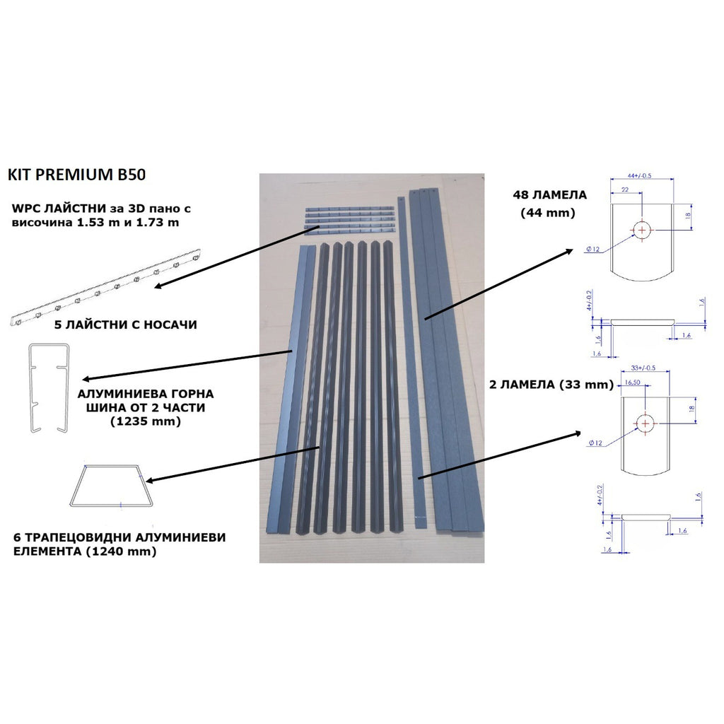 - Kit Premium B50 - Комплект WPC ламели за 3D оградно пано