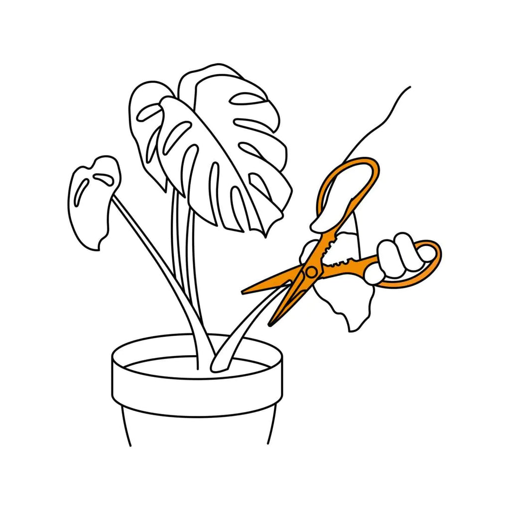 • Ножицата за цветя е създадена за прецизно подрязване на стайни растения, включително такива с гъсти листа