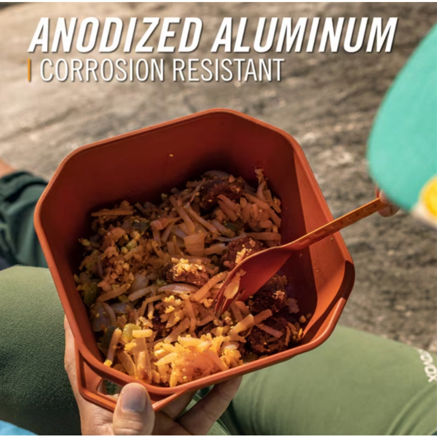 Този лек комплект съдържа всичко, което ви е необходимо за готвене, хранене и почистване на съдове сред природата.