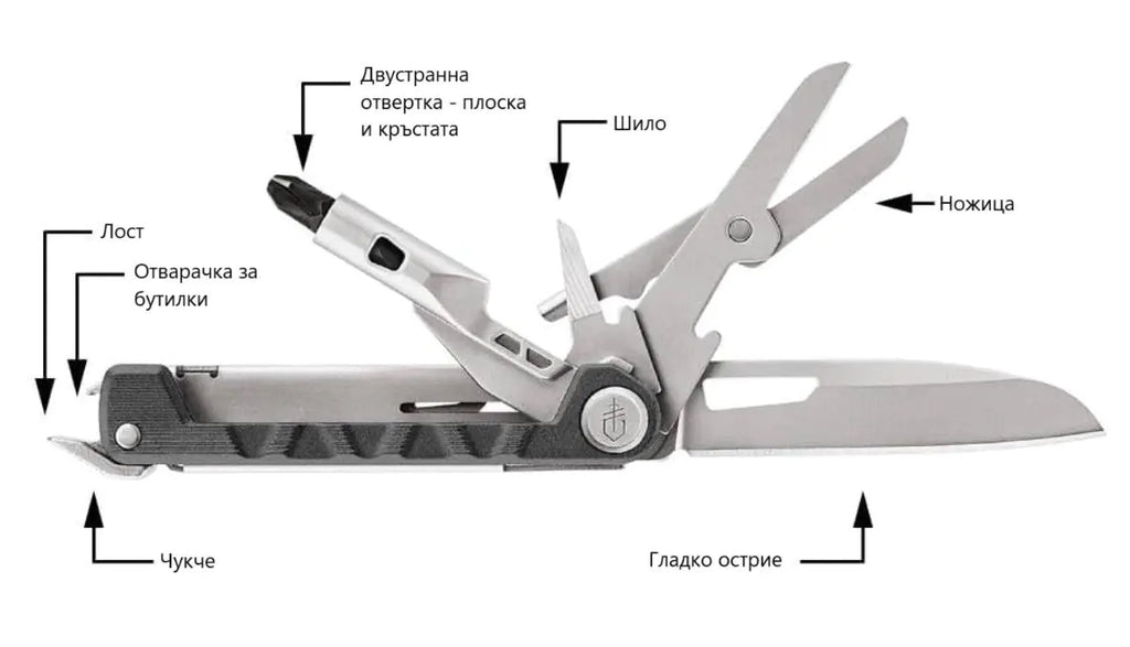• Универсален мултифункционален инструмент за различни задачи, идеален спътник за дома, на къмпинг или други пътувания