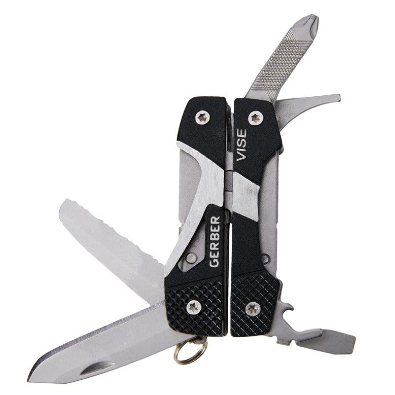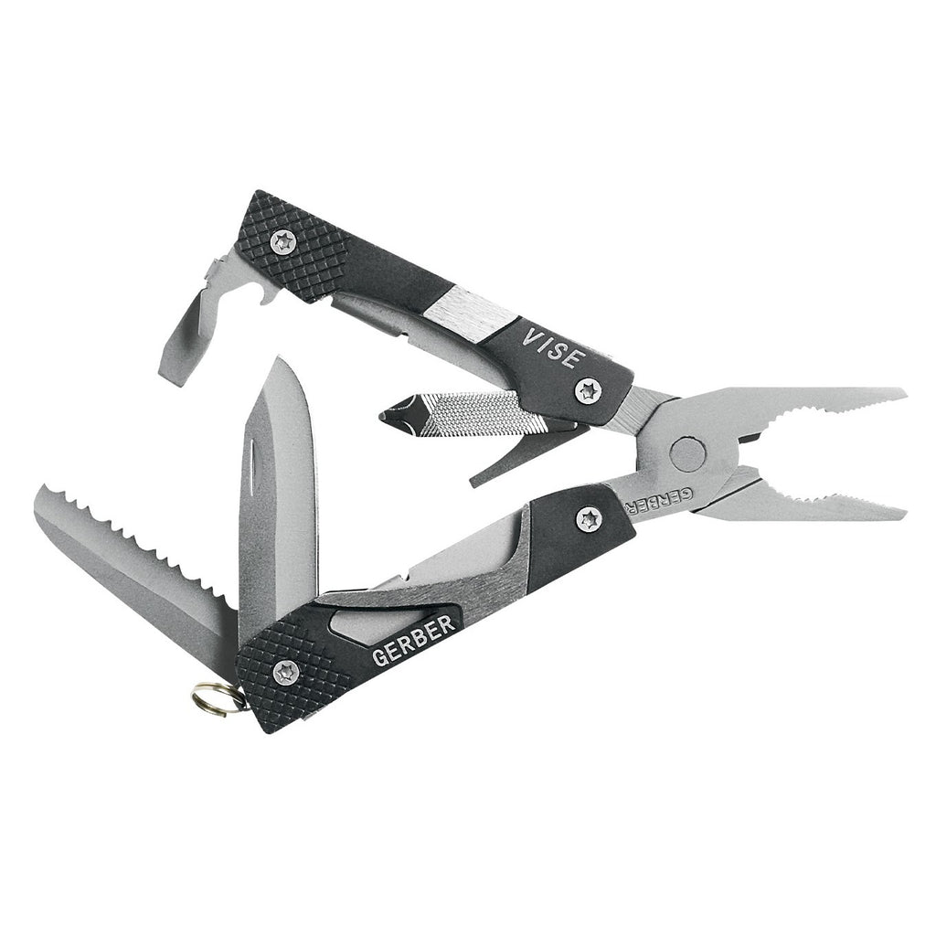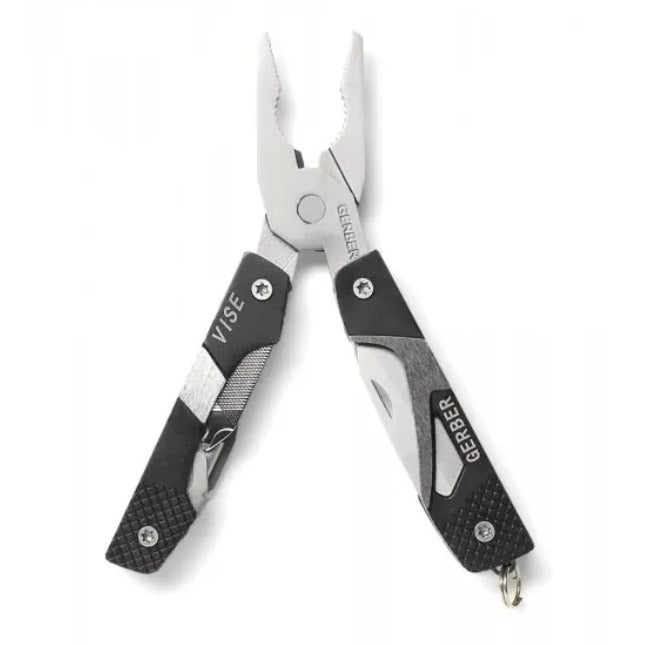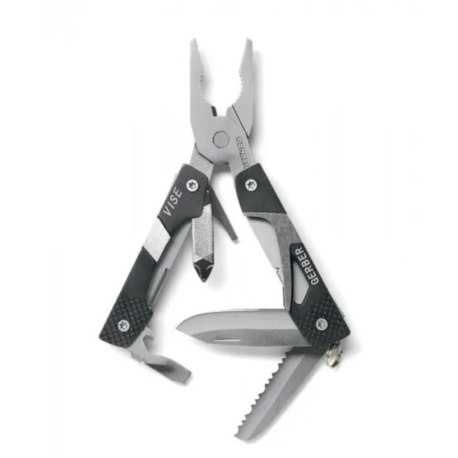 Практичният мултитул Vise на Gerber със среден размер има основен елемент клещи, както и други 8 инструмента, удобно разположени в дръжките.