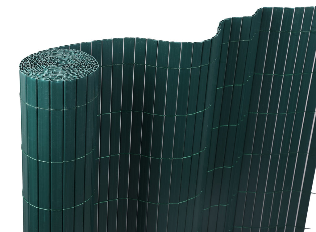 Покривалото е направено от двойни PVC ламели в тъмнозелен цвят и осигурява 90% плътност.