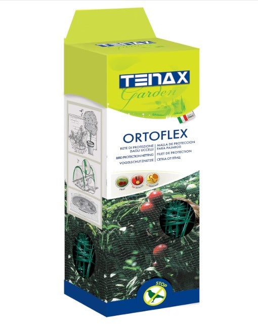 Квадратната мрежа Ortoflex на италианския производител TENAX се използва за защита на плодове, зеленчуци, семена и други култури от птици, без да им причинява наранявания.