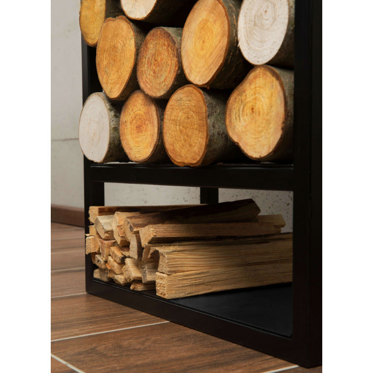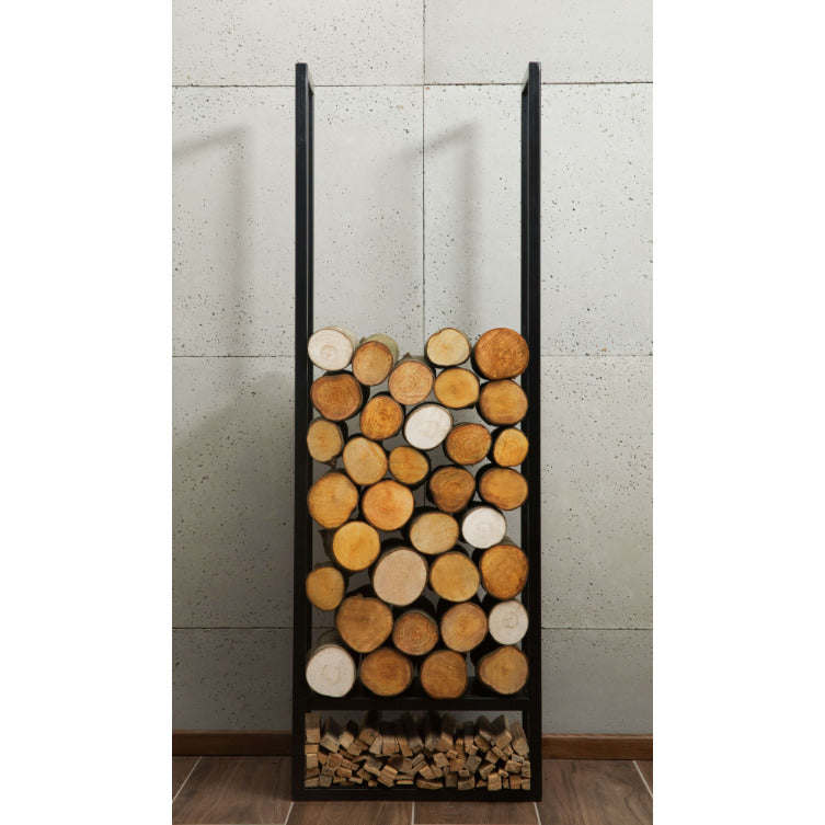 Поставката за дърва Atos е много практична и може да изпълнява различни функции. Тя е стилен декоративен елемент, елегантен аксесоар до камината в хола, удобно място за подреждане на дърва, идеално допълнение към интериора на къщата, може да се ползва на терасата или да се постави отвън до градинското огнище. Стоманените профили са прахово боядисани и са устойчиви на външни климатични влияния. Те са здраво заварени един за друг, а не са свързани с болтови връзки, което гарантира дълги години употреба.
