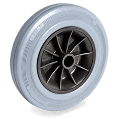 СЕРИЯ 22: Колела с център от полипропилен и бандаж от неоставяща следа сива гума.Подходящи за колички с леки товари, също и при наличие на препятствия и за използване на закрито и на открито. Примери за препоръчителни приложения: колички за инструменти, колички за промишлени манипулации на закрито. При ползването им върху гладки настилки (мозайка, теракота, фаянс) не оставят следи. Не се препоръчва използването им при наличието на органични разтворители, хлорни и неорганични субстанции.