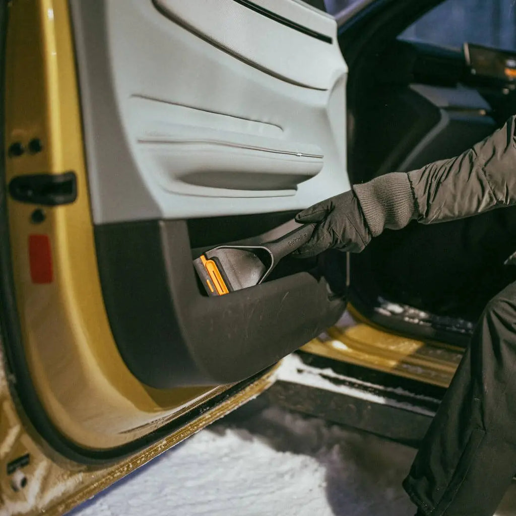 Стъргалката за лед Fiskars Solid™ е компактен и здрав зимен инструмент, създаден за удобно съхранение в автомобила. Двустранната глава предлага две функции – твърда страна за премахване на лед и мека страна за почистване на вода и киша. Главата на стъргалката се сваля и завърта лесно, което прави инструмента удобен за употреба и поддръжка. Незаменим спътник за ясна видимост в студените дни.