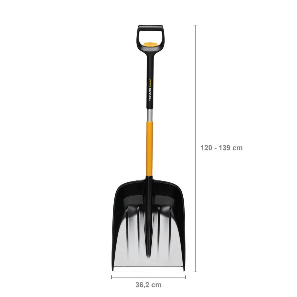 Телескопичната лопата за сняг Fiskars X-series™ 120-139 cm е лека, но изключително здрава и е създадена за ефективно почистване дори при тежки зимни условия. Предназначена е за повдигане, преместване и изхвърляне на сняг. Телескопичната дръжка позволява лесно регулиране според ръста на потребителя, а широкият алуминиев ръб улеснява разчупването и събирането на сняг и лед. Благодарение на ергономичната D-образна ръкохватка и здравият подсилен ръб, инструментът осигурява комфорт, стабилност и дълъг живот дори при интензивна употреба.