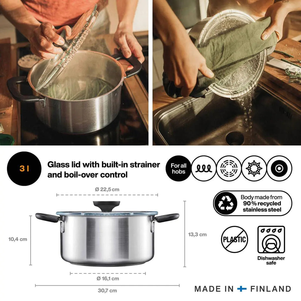 • Материали - издръжлива 90% рециклирана неръждаема стомана; стъкло; силикон