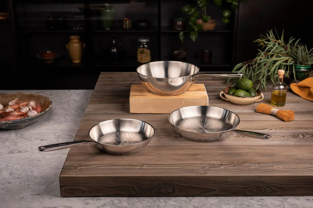 Тиганът All Steel pure е съзаден за модерната кухня. Изработен е от 90% рециклирана стомана с 92% по-нисък въглероден отпечатък от средното за индустрията. Възобновяемите и устойчиви процеси за производство на съдове за готвене намаляват генерирането на прах и отпадъците с до 80%. Всички продукти от стомана на Fiskars (ножове и съдове за готвене) имат изключително дълъг живот с 25-годишна гаранция. Изчистеният дизайн гарантира, че те ще бъдат обичани години наред. Всяка стоманена част е 100% рециклируема – изработена от възобновяеми материали без пластмаса.