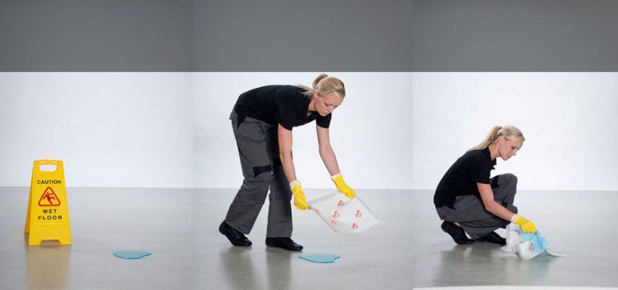 - Течността се превръща в гел и няма опасност от протичане, дори да се наложи подложката да се премести, за да се сложи върху друг разлив или при изхвърляне